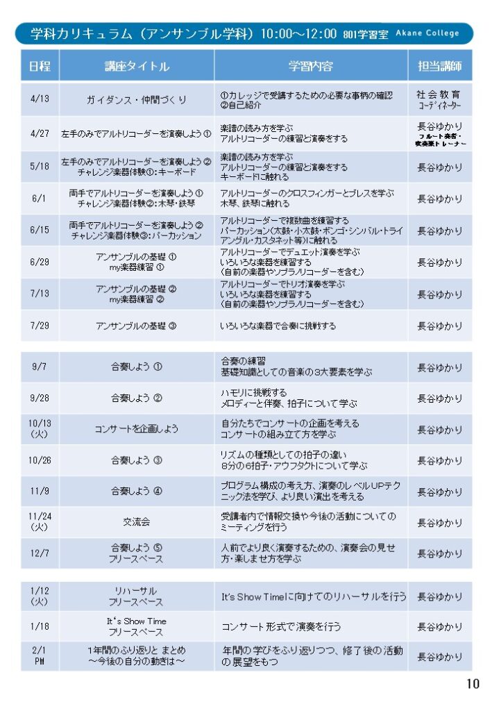 アンサンブル学科 カリキュラム2025年度のアンサンブル学科カリキュラム予定を掲載しています。日程やカリキュラム内容については変更する場合があります。下の画像をクリックするとカリキュラムページへ移動します。