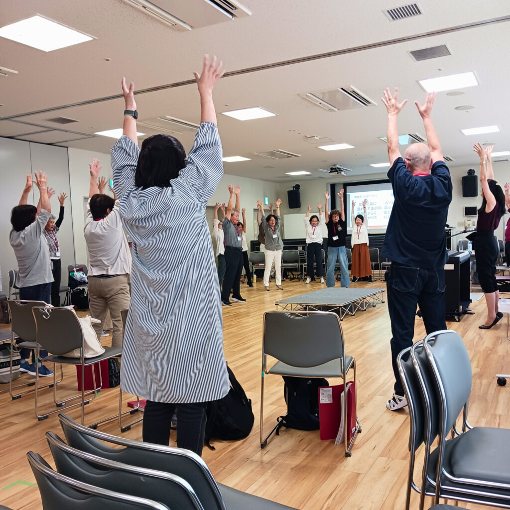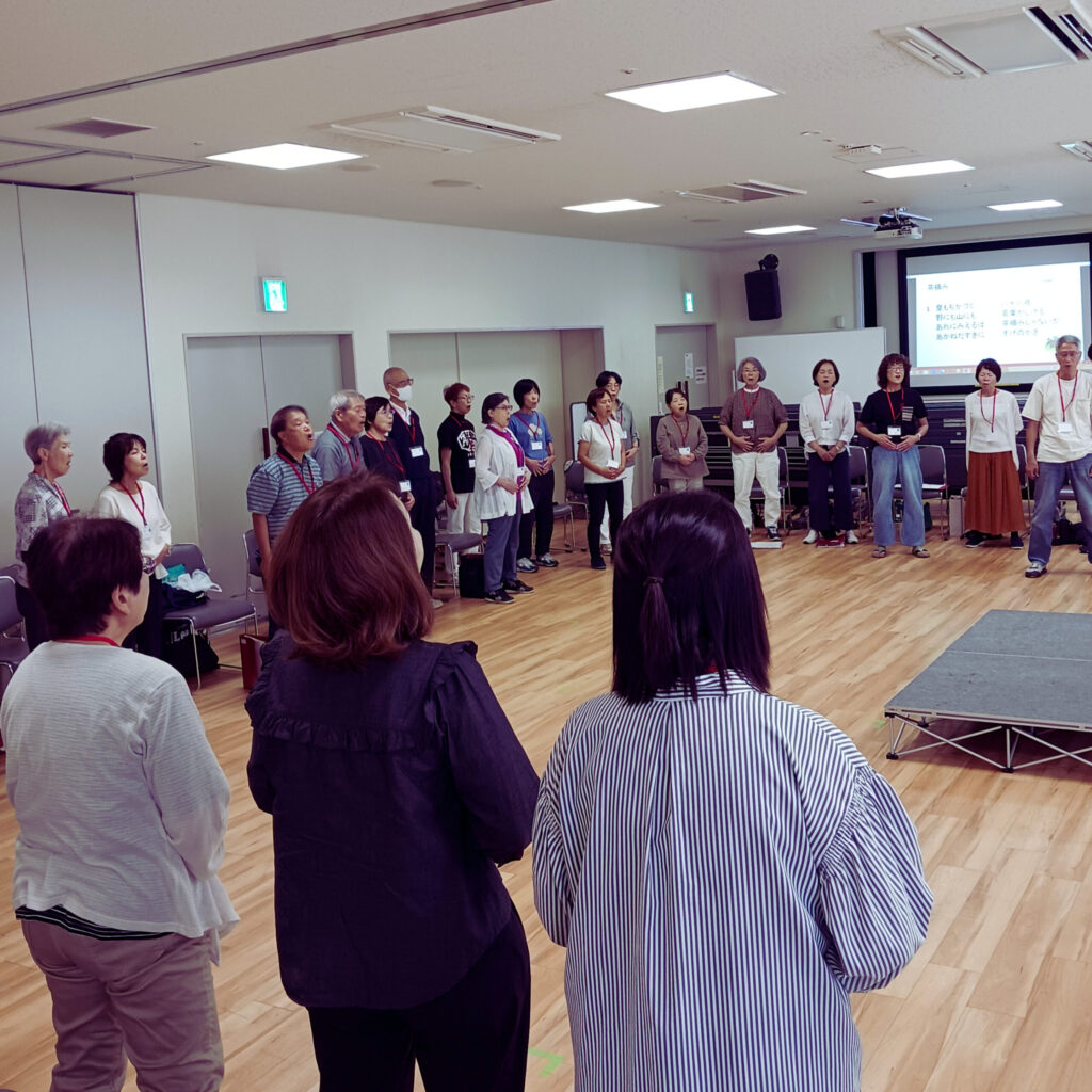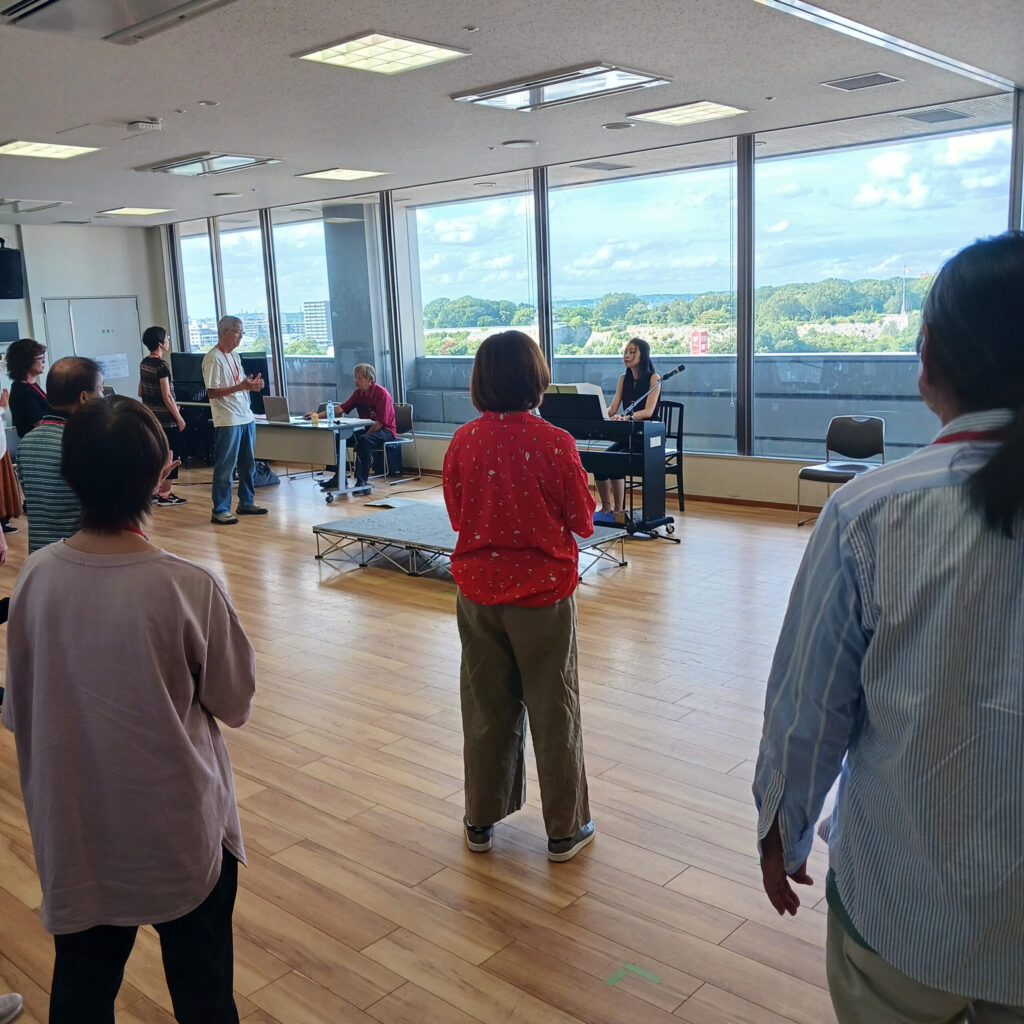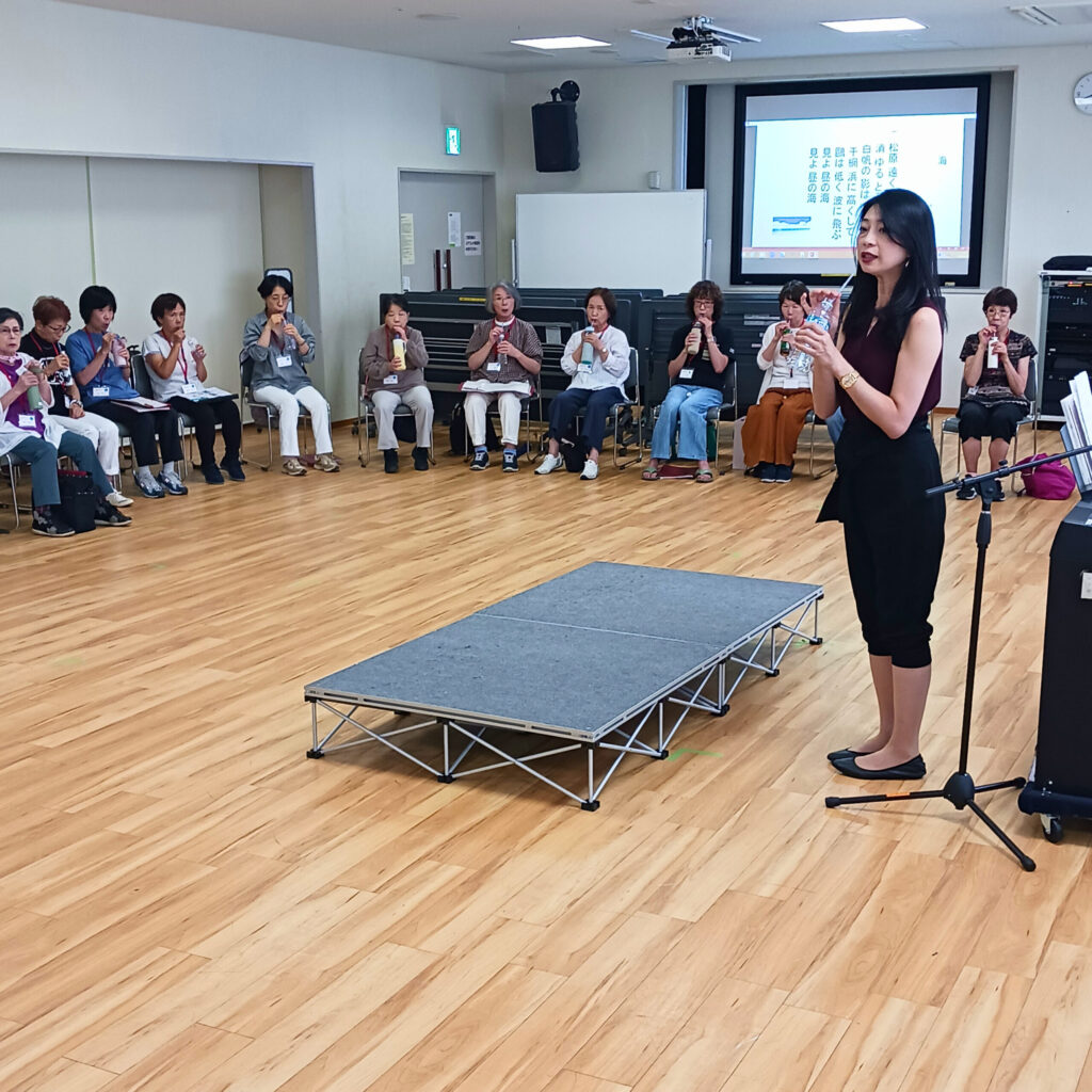 また、遠くを見たり、近くを見たりと視線を変えることで、発声に活かす「遠近法」を学びました。講座の最後には、実際に「遠近法」を使って「見上げてごらん夜の星を」を歌いました。