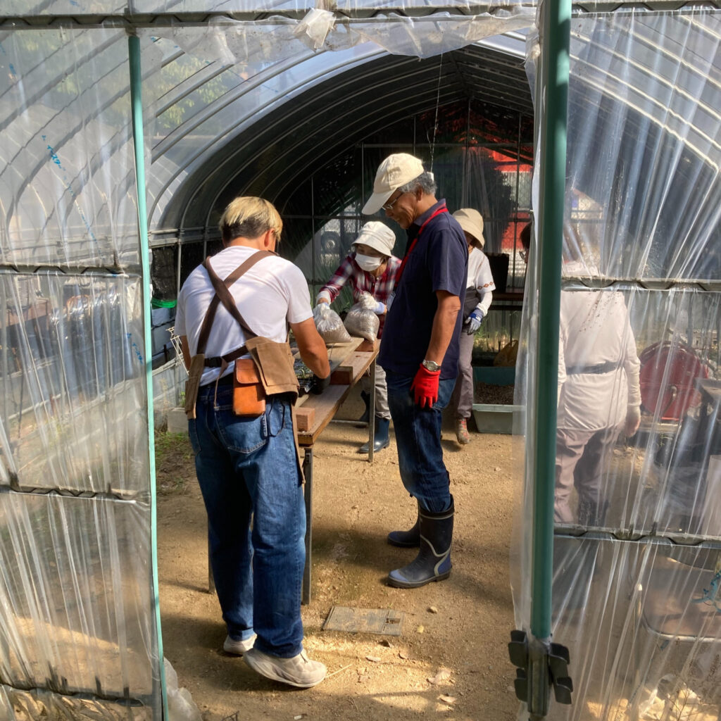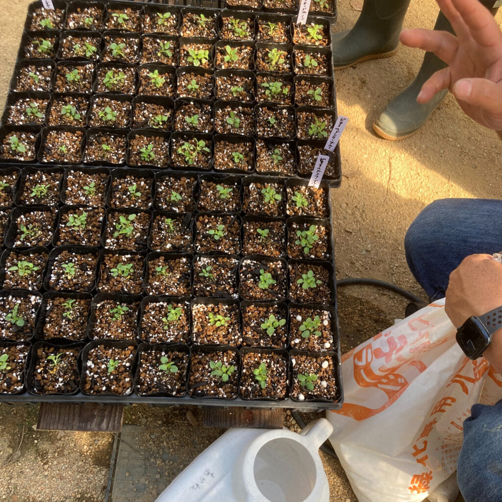 今年のメンバーはチームワークが良いので、次々と苗ポットが出来上がりました。