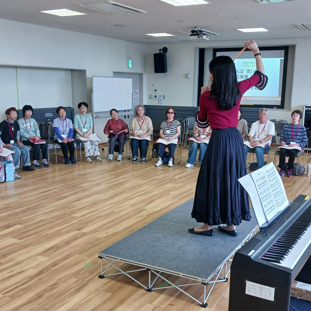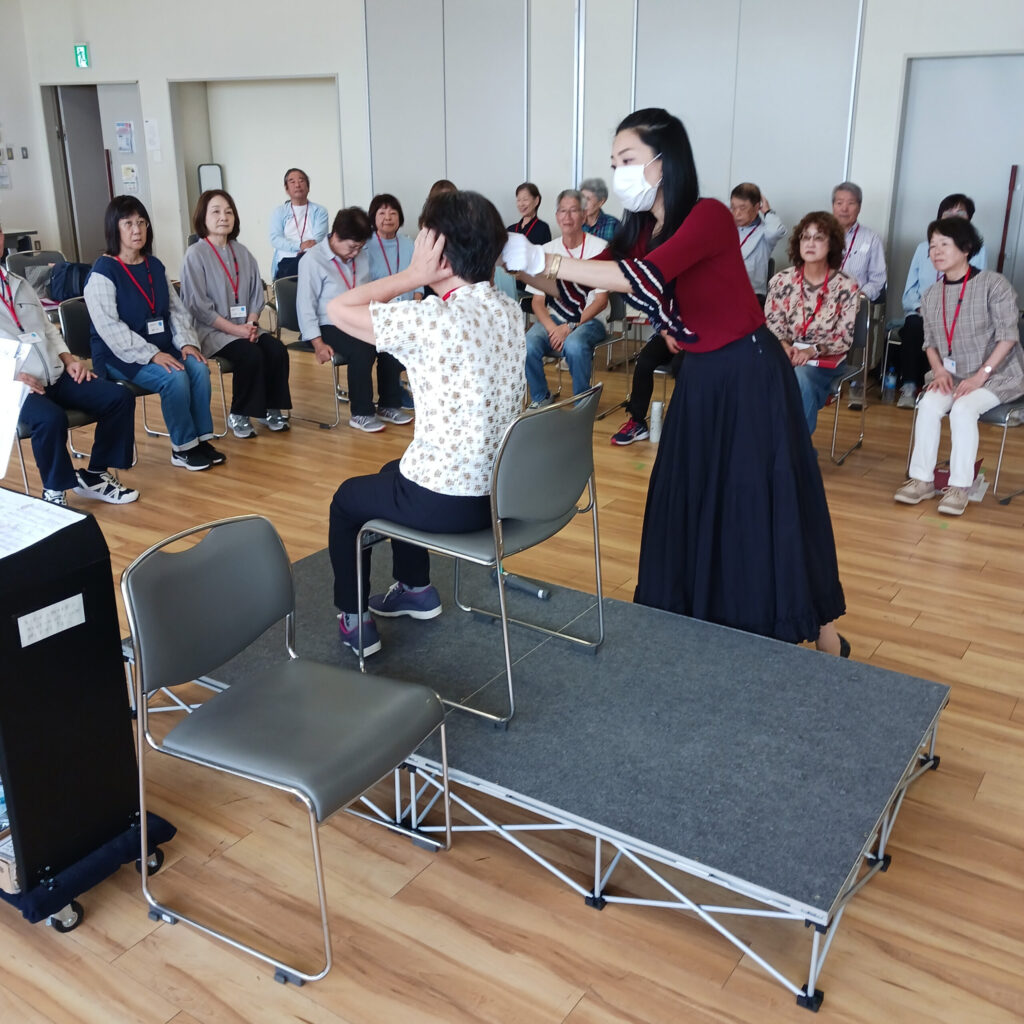 10月20日のボイス学科では、前回より引き続き、高音を楽に出す発声法に取り組みました。今回は、江本講師が、受講生一人ずつの後頭部を持ち上げ、アドバイスしてくれました。