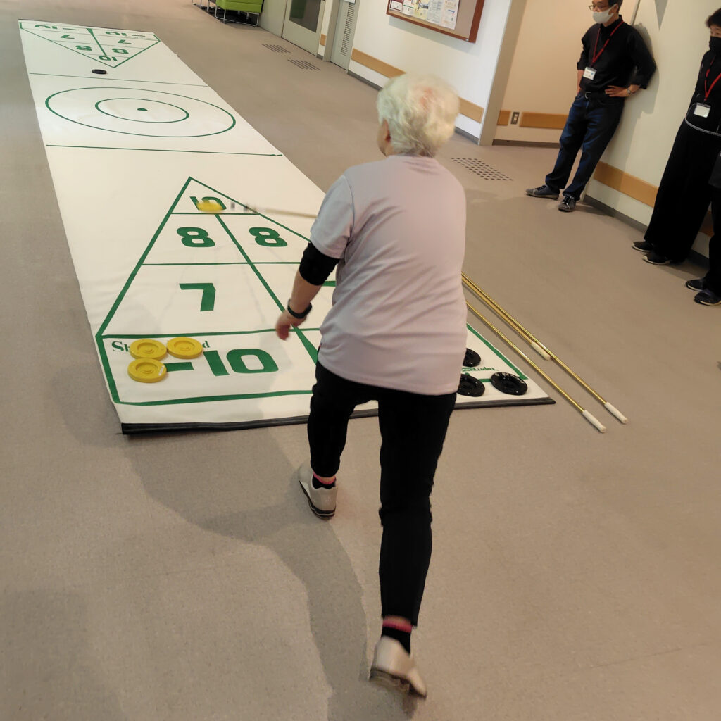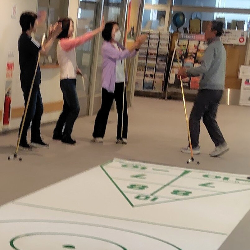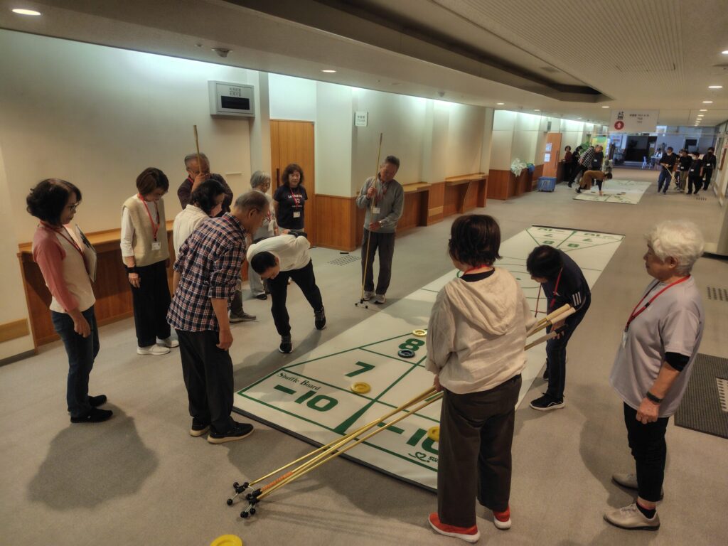 相手の円盤を押し出したり、コースをふさいだり。知的な駆け引きに思わず興奮!4チーム総当たり戦では、どんでん返しに歓声が沸き、ナイスショットに思わずハイタッチ!今日もいい汗かきました~♪