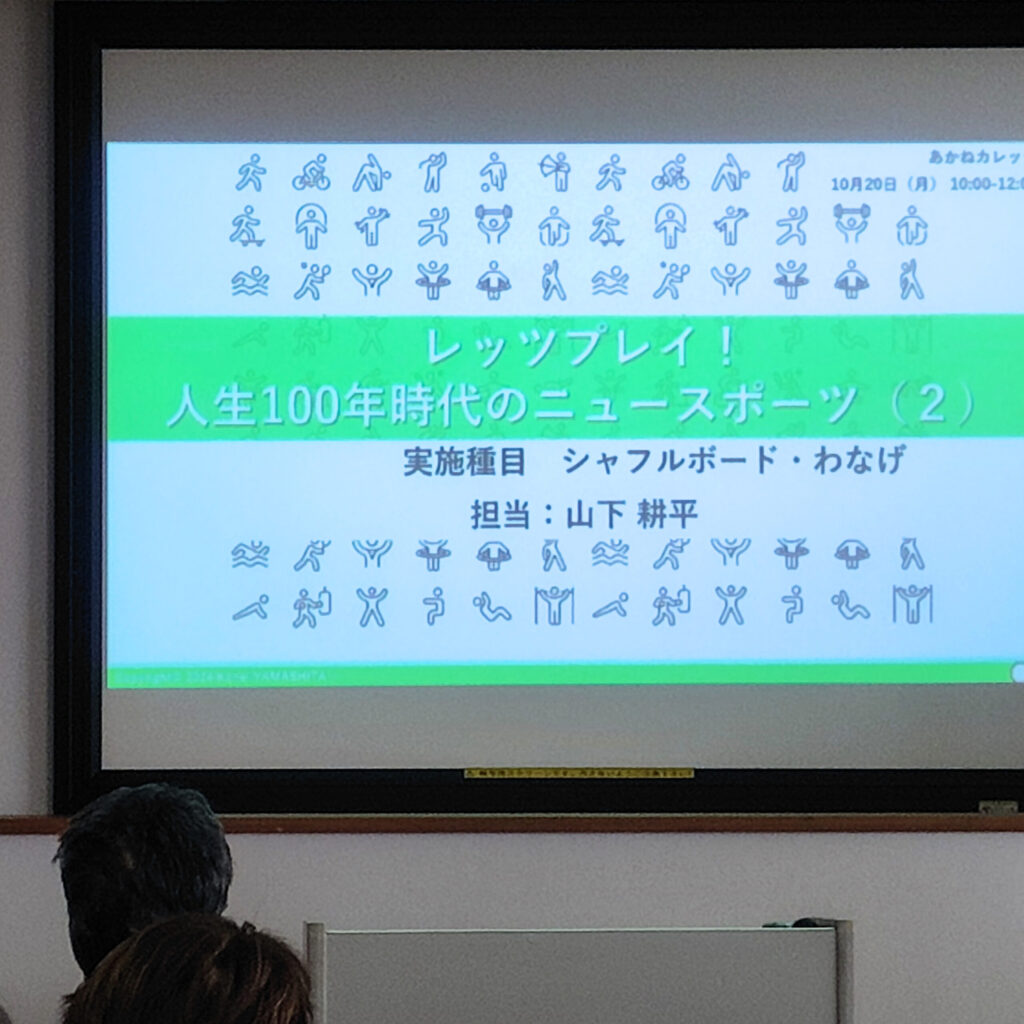 10月20日の健康・スポーツ学科は「レッツプレイ!人生100年時代のニュースポーツ」の2回目。