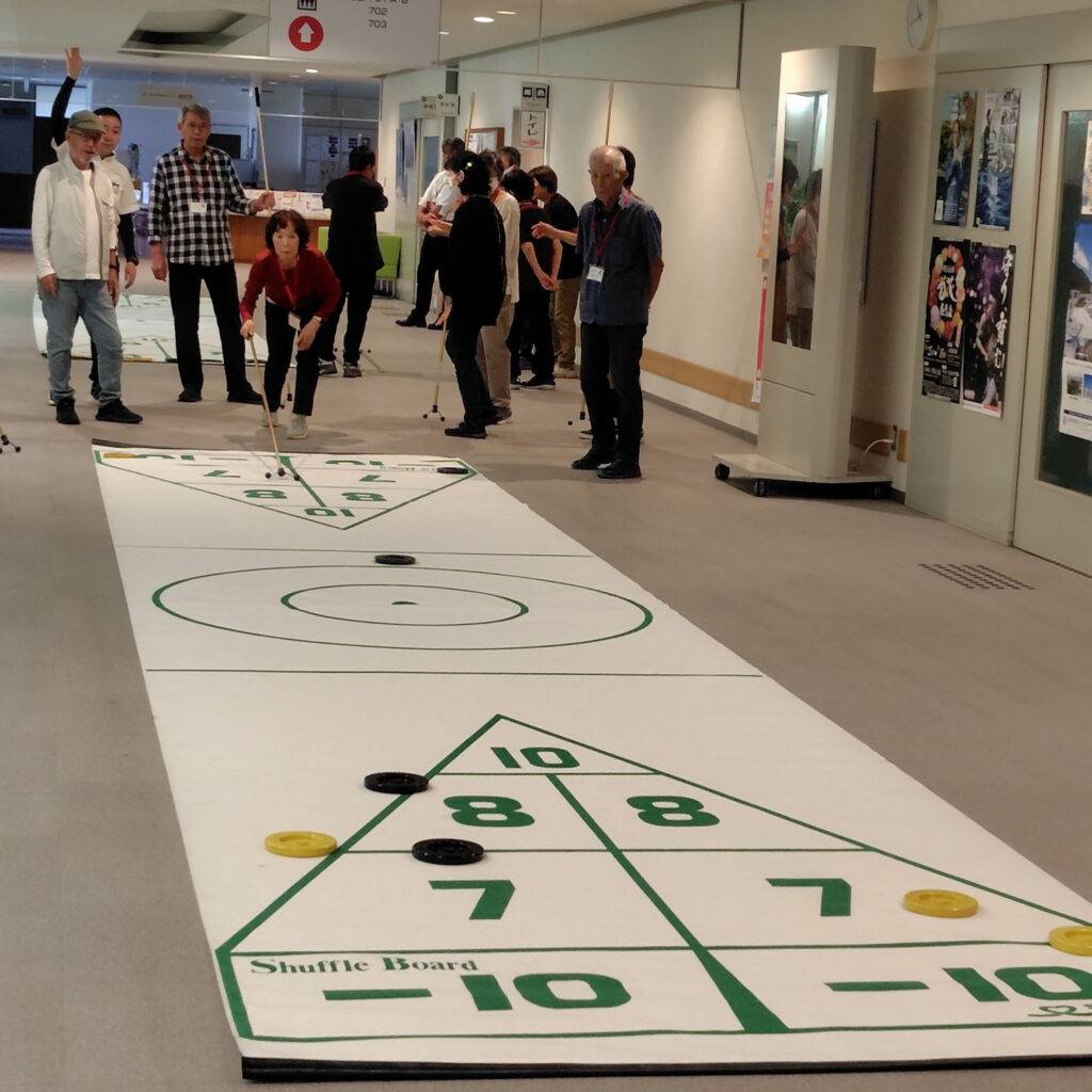 前回に続きニュースポーツに挑戦。今回は、豪華客船のデッキで船旅の合間に楽しまれたスポーツ「シャフルボード」です。