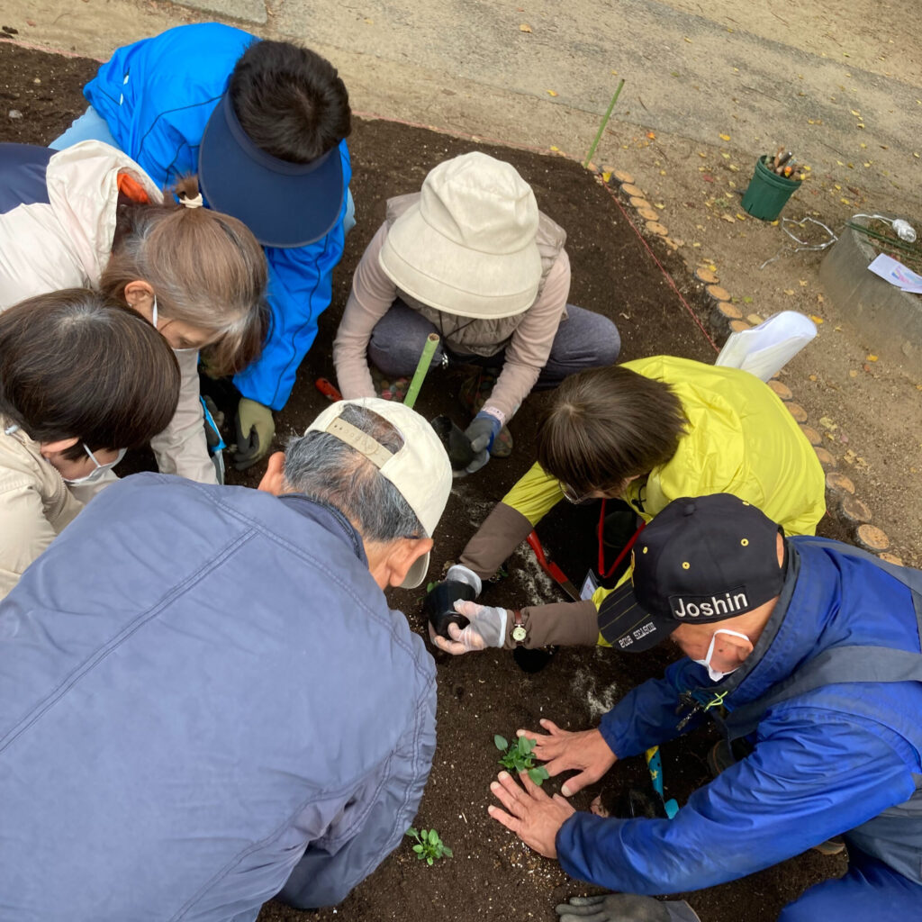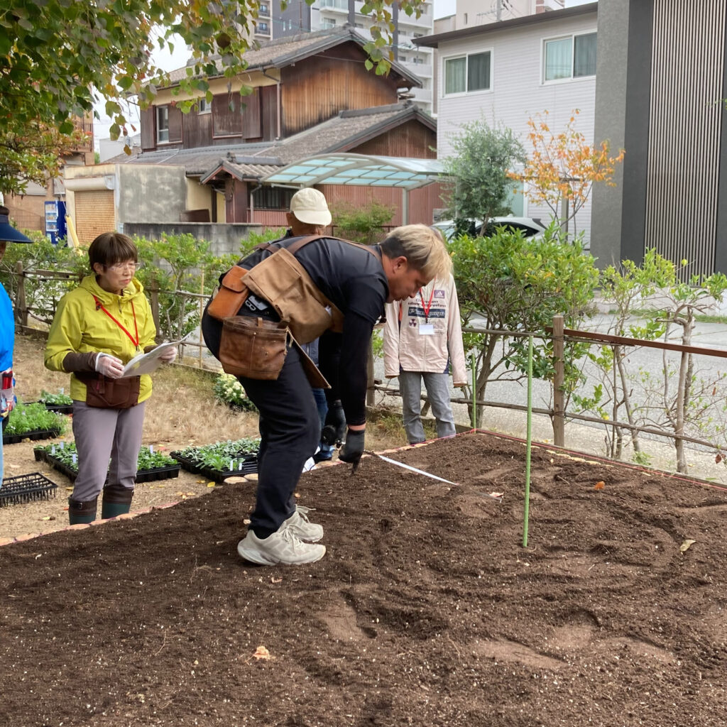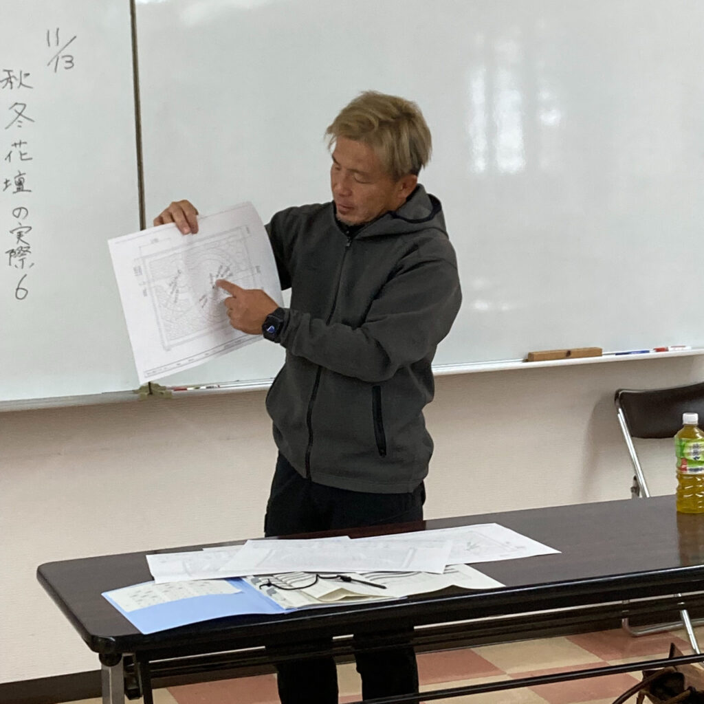 11月13日の花づくり学科のテーマは「秋冬花壇の実際⑥ 花壇植付作業」。