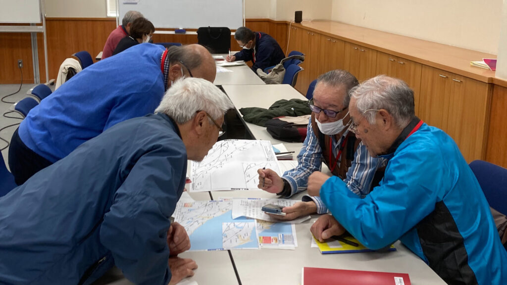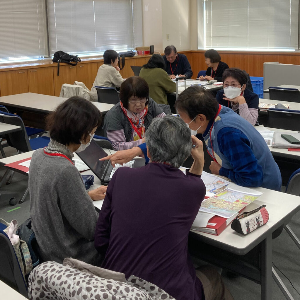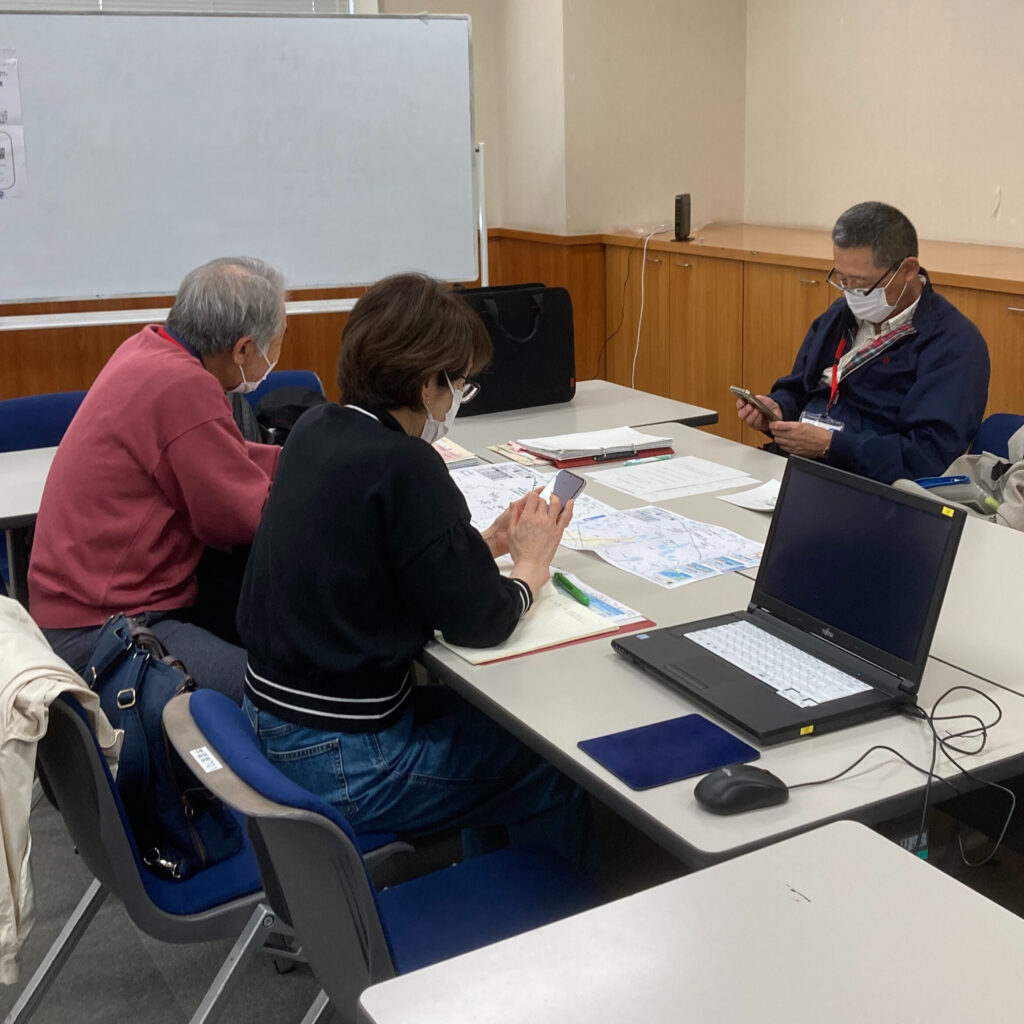 受講生は住んでいる地域ごとに班に分かれ、その地域のマップ作成を担当。暮らしているからこそ得られる丁寧な情報がくみ取れ、互いに「へー、そんなことがあったのか」などと顔を近づけて話していました。あと2回の授業で発表まで組み立てていきます。