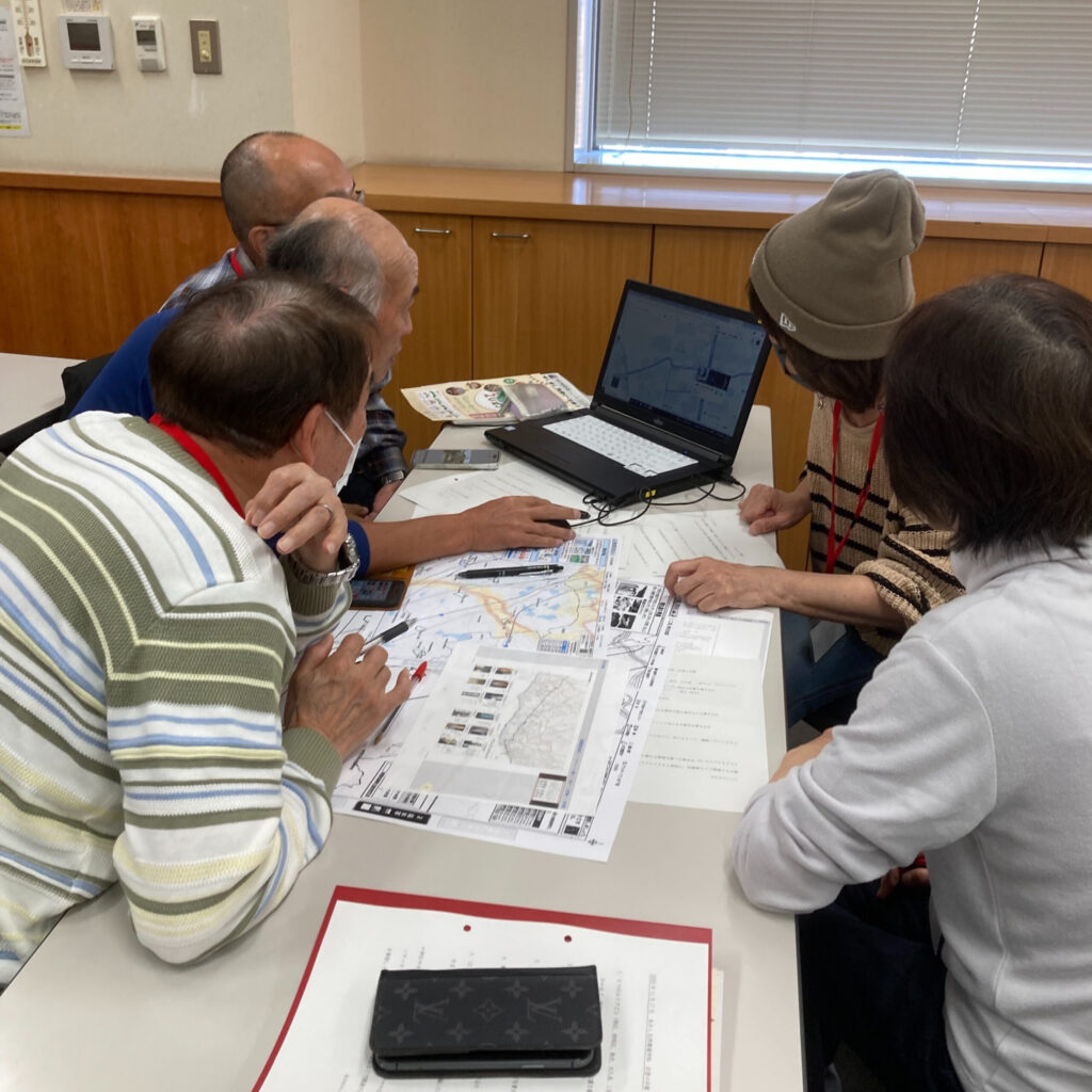 受講生は住んでいる地域ごとに班に分かれ、その地域のマップ作成を担当。暮らしているからこそ得られる丁寧な情報がくみ取れ、互いに「へー、そんなことがあったのか」などと顔を近づけて話していました。あと2回の授業で発表まで組み立てていきます。