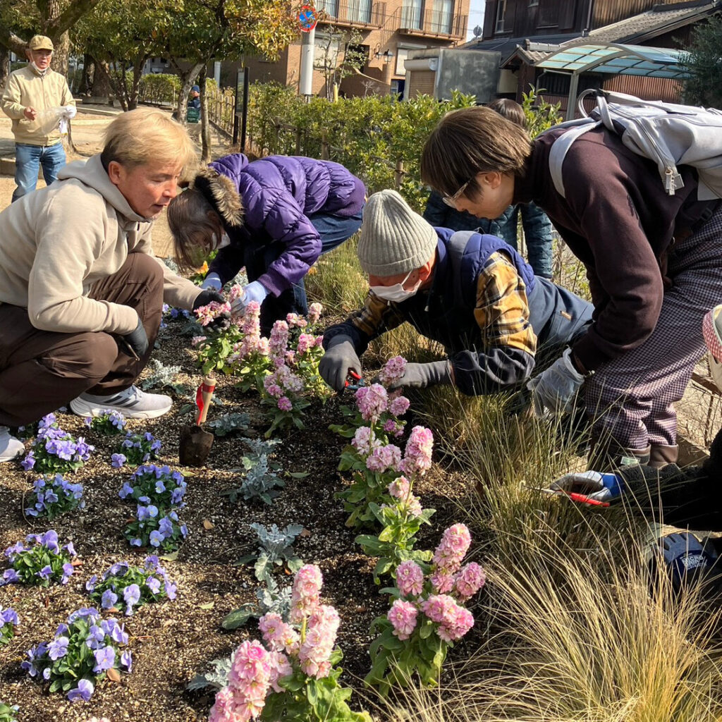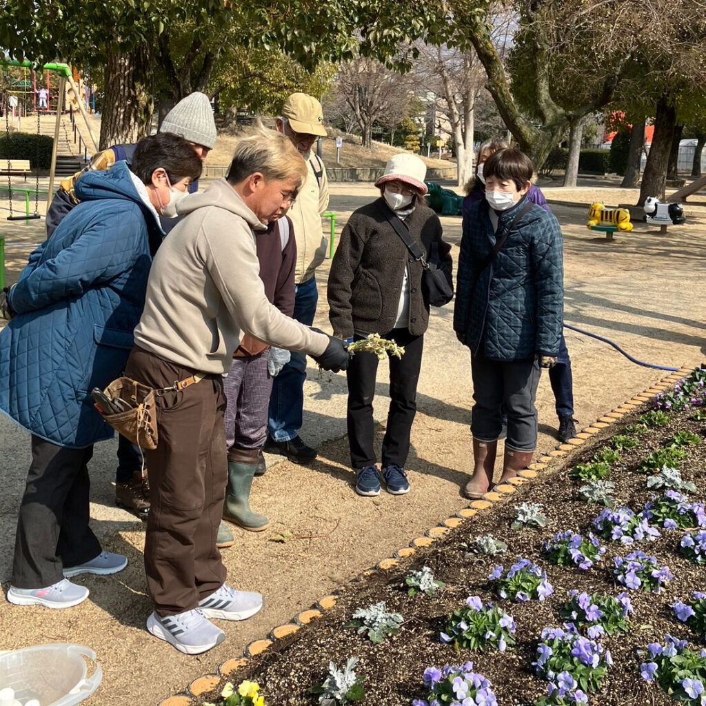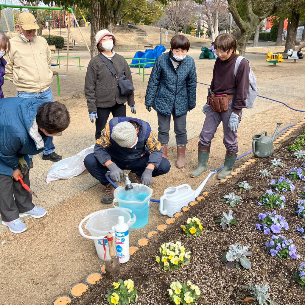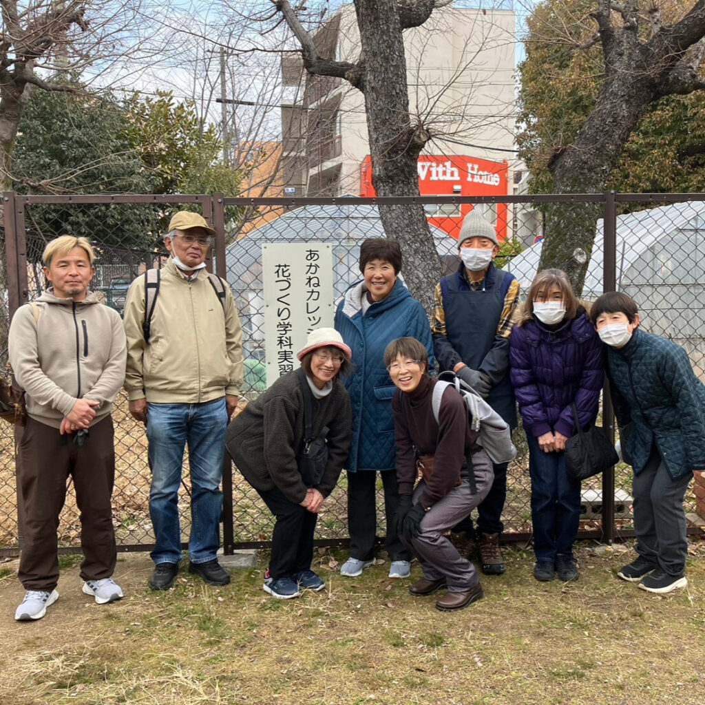 一人ひとり、講座の感想や改善希望を聞いたあと、最後に花壇でストックに薄めた肥料をやりました。暑い日も寒い日も愛情を込めて管理をしてくださり、受講生のみなさんの絆が深まりました。これからも講義を思い出し、自宅等で花づくりに挑戦されるよう期待しています。
