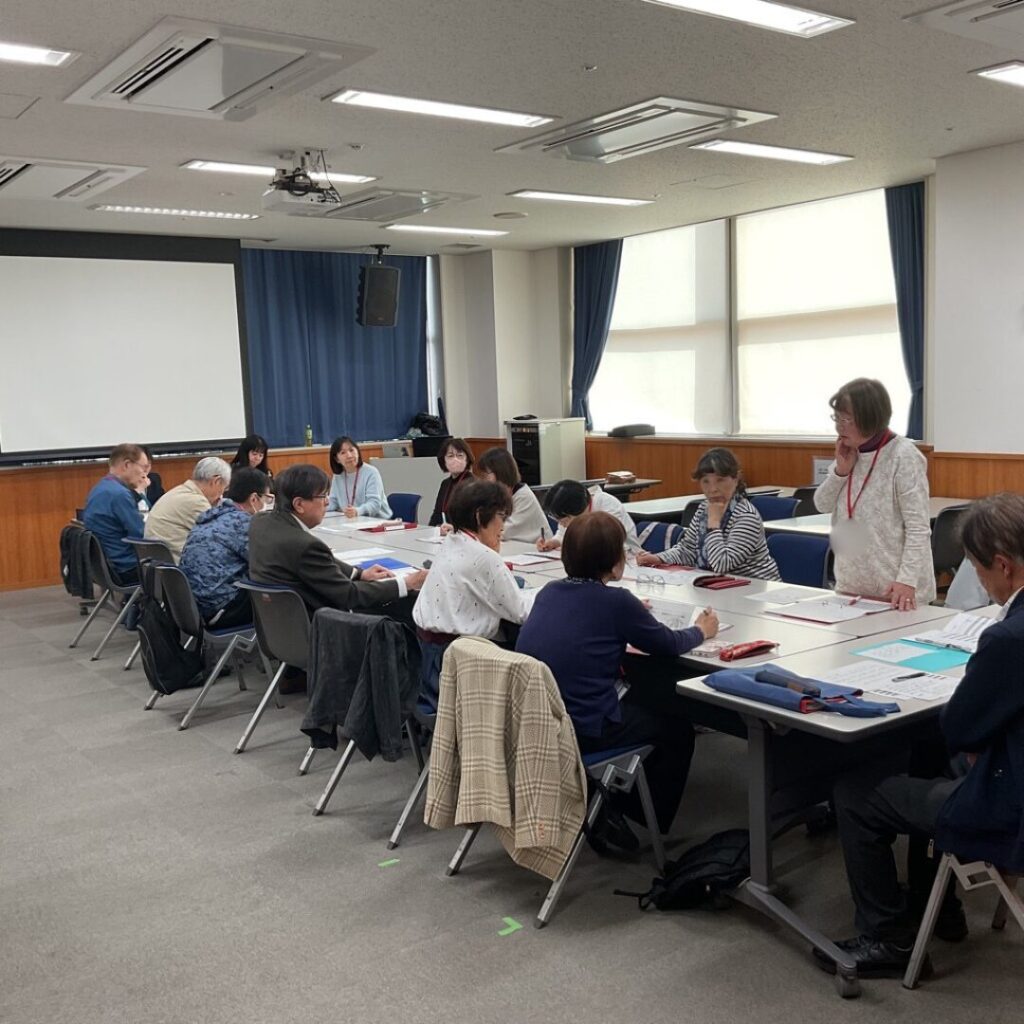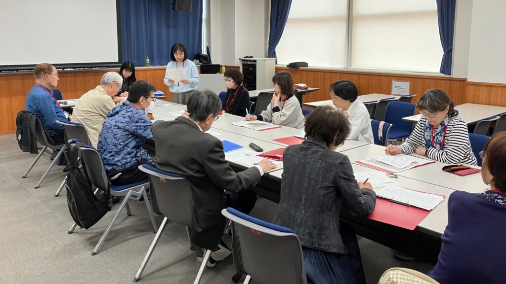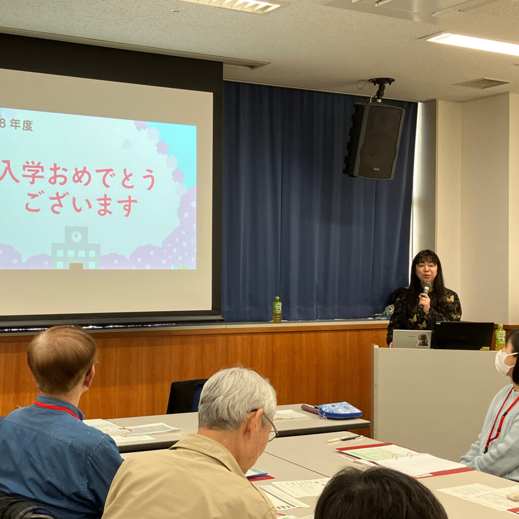 初顔合わせにもかかわらず、最初からとても良い雰囲気で始まりました。自己紹介もそれぞれが丁寧で、みなさん様々な分野で活動・活躍しておられる様子です。今年度も松尾 やよい講師にご指導いただきます。松尾講師もいつも通りほがらかにみなさんに自己紹介をされ、これからの1年が楽しみなスタートとなりました。