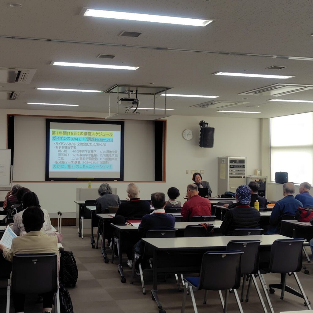 4月6日、2026年度のあかし地域学科がスタートしました。まずは担当の吉岡 保 講師のイントロダクション・セッションから。バラエティに富んだ年間カリキュラムの紹介や「グローカルな視点」をもつ意味について学びました。