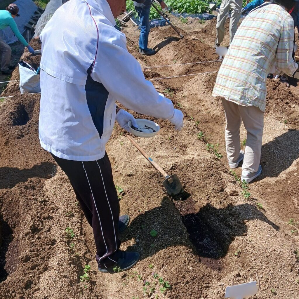 最後にトウモロコシの種を植えました。また、トウモロコシときゅうりの種を持ち帰って苗を育て、次回以降、畑へ植え付ける予定です。