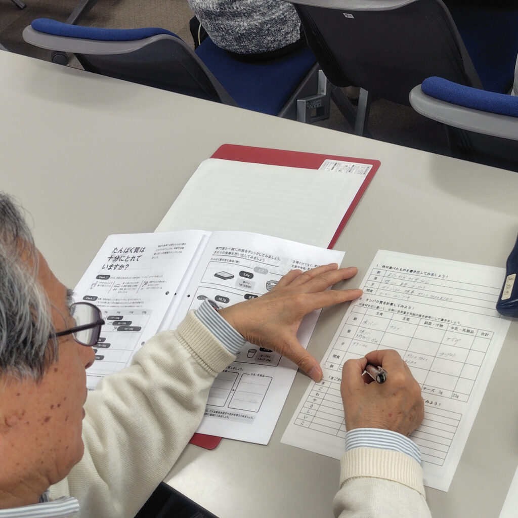 昨日の食事、何を食べました?今回の講座は食生活からみるフレイル予防をテーマに、必要な栄養素、特にタンパク質の重要性について考えました。